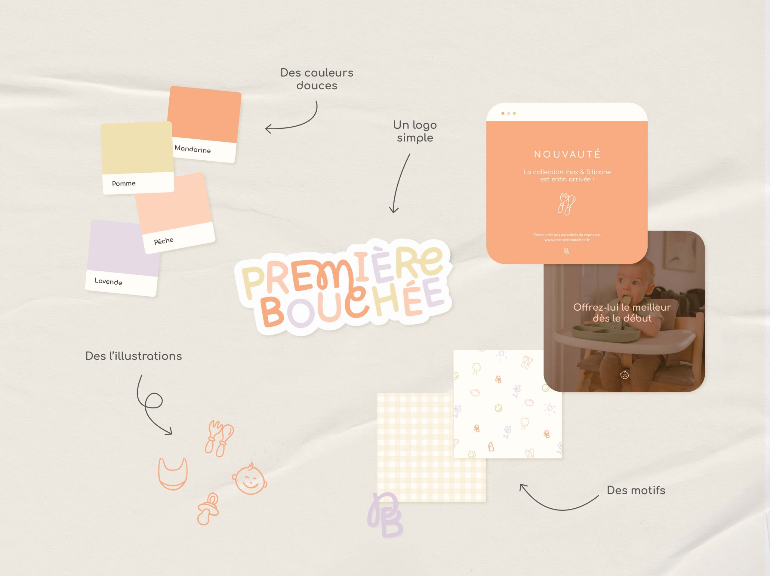 J’ai eu le plaisir de créer l’identité visuelle de Première Bouchée, une marque française dédiée à la vaisselle et aux accessoires premium pour les premiers repas des tout-petits.